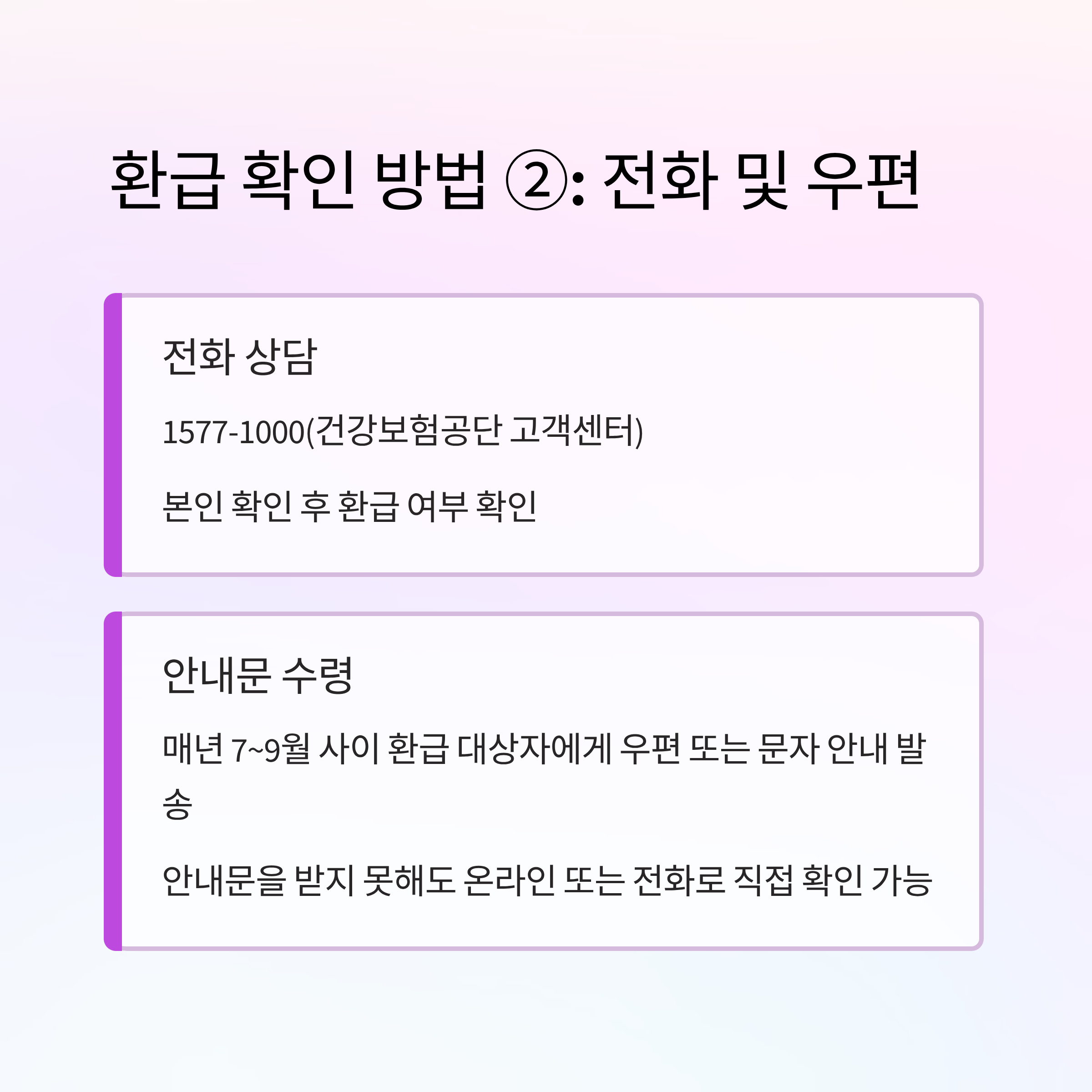 - 온라인·전화·우편 등 다양한 경로로 환급 확인 및 신청 가능