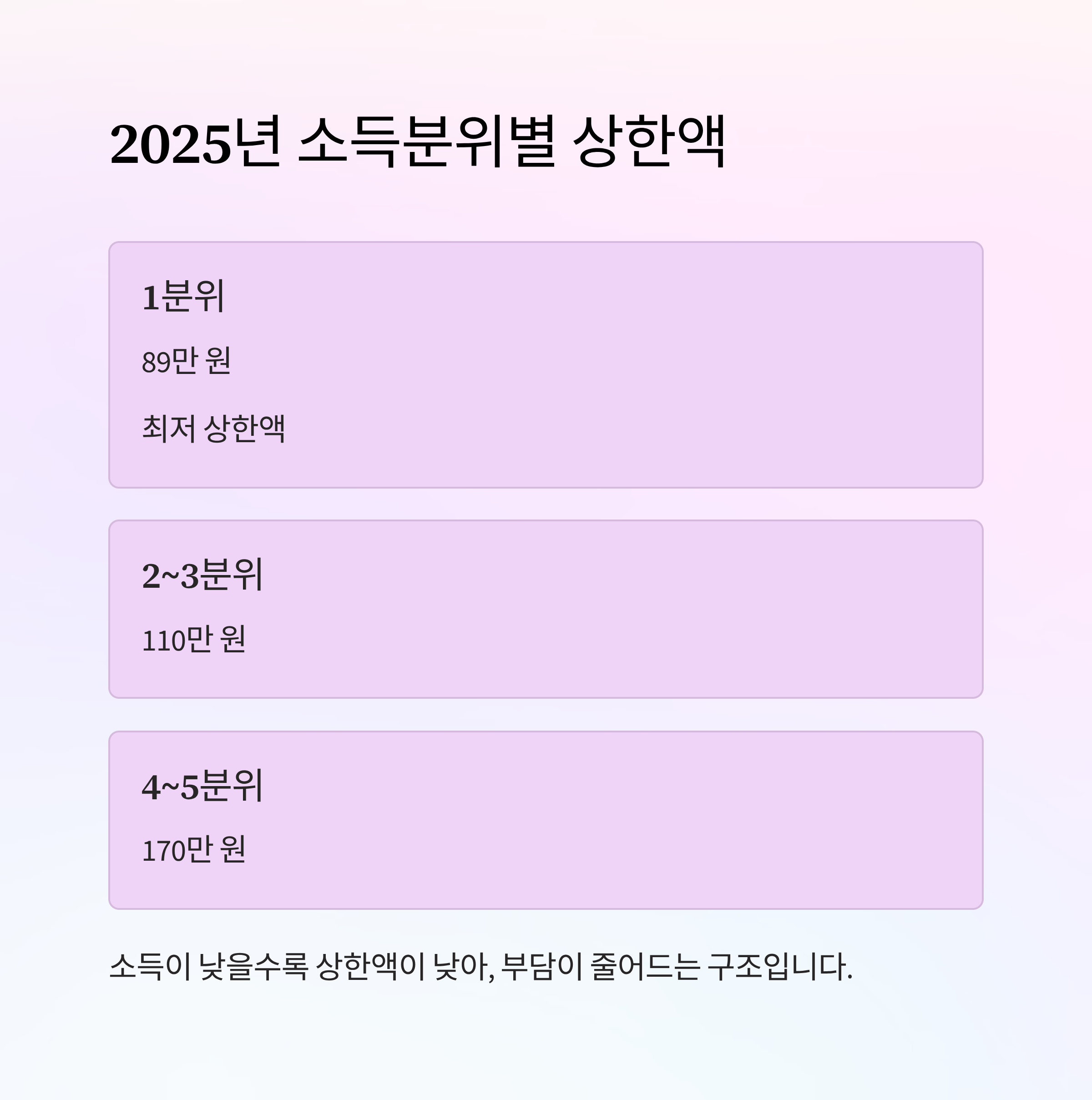 | 1분위 | 89만 원 | 최저 상한액 |